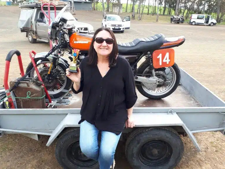 It wasn’t until I was 38 and just had my 3rd baby (yeah I know what you are all thinking) that I decided it was time for that Ducati… so I bought a Ducati Pantah 1982 600, its still my baby. I live in a great part of Australia for Motorbike riding and while out and about I met the love of my life, my husband who happens to be a motorcycle mechanic and races classic/historic bikes, I started out on the track at Broadford Easter Bonanza and started to get that itch to race again and the feeling didn’t help when I was watching my husband. So I joined Preston Motorcycle club at the age of 49 and started Bracket racing, then I raced in the Vic Road Racing Championships at Broadford in the P5 unlimited superbike race on a Jaffa Kawasaki Z1 900 1973. That is what I love and at 52 there is no stopping me, except my fitness for wanting to do side car racing where I am still getting called a Maddy. (Still have the Ducati)